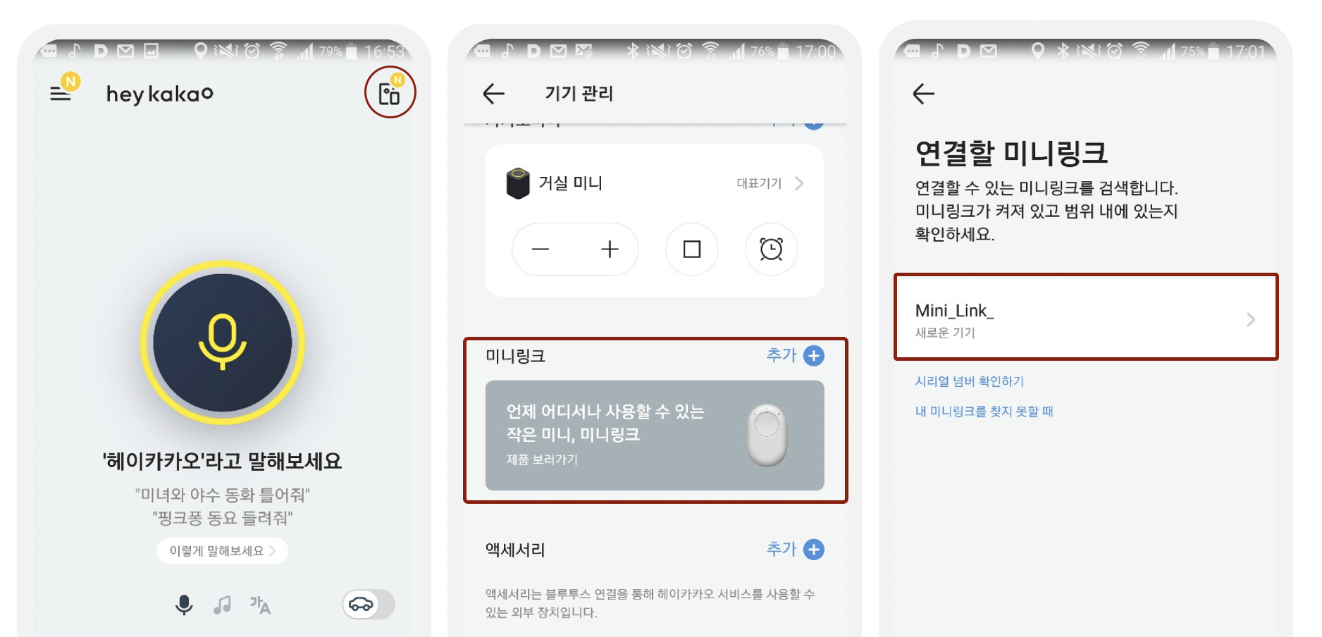 (미니링크와 헤이카카오 연결은