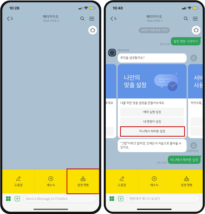 나만의 맞춤 설정 > 미니헥사 퀵버튼 설정 실행