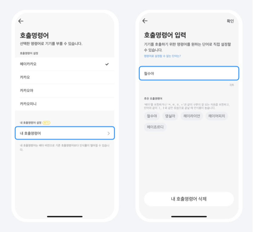 * 내 호출명령어 기능은 카카오미니 스피커, 미니헥사, 헤이카카오 앱에서 이용 가능합니다.