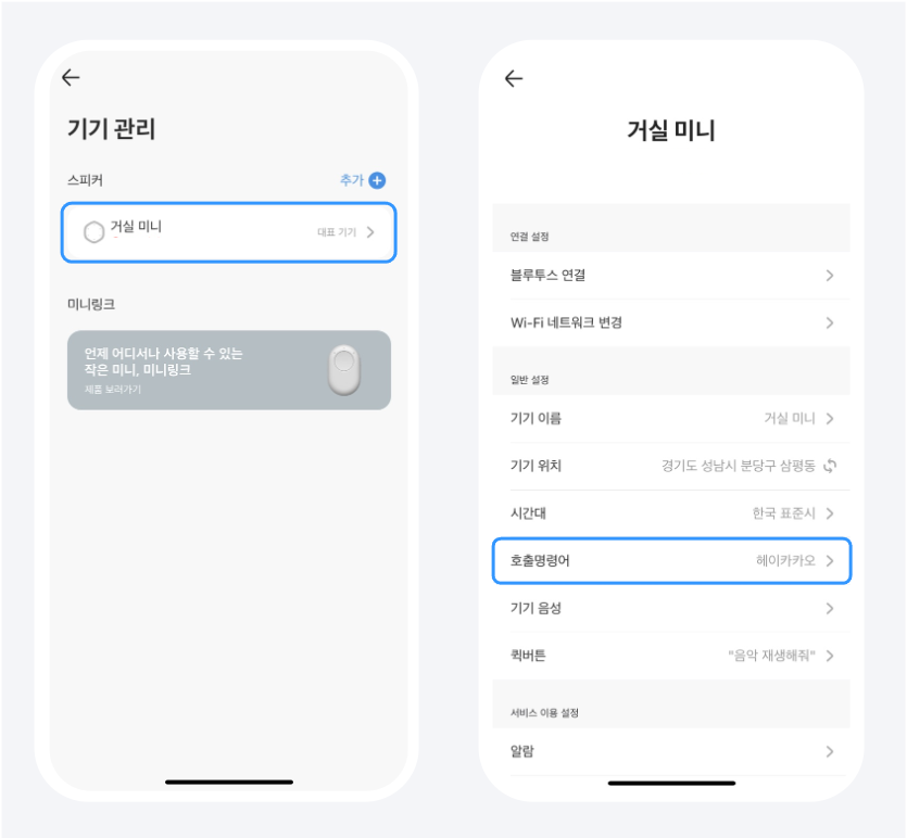 스피커별로 맞춤 호출어를 설정해보세요.