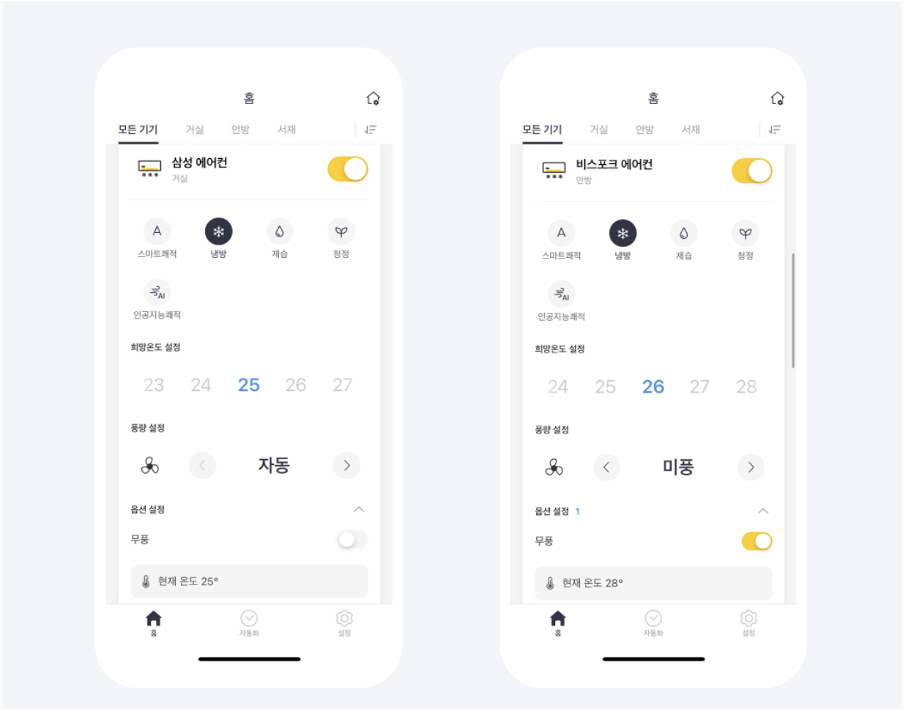 음성 제어와 동일하게 에어컨 제어가 가능하답니다.